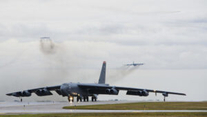 Luis Petri, ministro de Defensa, participó como copiloto de la prueba de uno de las aeronaves F-16 (Bo Amstrup/)Con el...