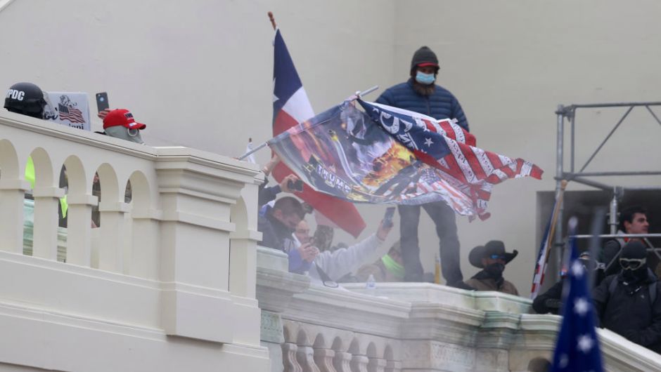 WASHINGTON, DC – JANUARY 06: Protesters gather on the U.S. Capitol Building on January 06, 2021 in Washington, DC. Pro-Trump protesters entered the U.S. Capitol building after mass demonstrations in the nation’s capital during a joint session Congress to ratify President-elect Joe Biden’s 306-232 Electoral College win over President Donald Trump. (Photo by Tasos Katopodis/Getty Images)
